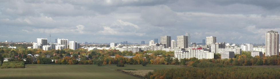 Wir treffen uns dieses Mal in der Gropiusstadt, direkt am Ausgang des "Gropi". Dieses Einkaufszentrum liegt am Rand der Gropiusstadt und ist eines der Größten in Berlin. Auch architektonisch etwas schöner - aber das ist ja Geschmackssache. Wer will, kann vor der Wanderung durch die Geschäfte flanieren. Wir starten unsere Wanderung und laufen zunächst entlang des Wildhüterstegs durch die Gropiusstadt in Richtung Lipschitzallee. Der Wildhütersteg ist ein alter Grünzug, der damals in die Planung des Wohngebietes einbezogen wurde. Entlang der Lipschitzallee geht es nun in Richtung Stadtgrenze. Hier verlassen wir Berlin und wandern in Richtung Groß Ziethen. Die "Groß Ziethener Höhe" findet man auf heutigen Karten neudeutsch als "SkyPoint Schönefeld" - eigentlich nur ein großer Müllhaufen. Feste Wege hinauf gibt es (noch?) nicht, wir nutzen den ausgetretenen Trampelpfad für die Besteigung. Oben angekommen, bietet sich ein phantastischer Rundblick! Weiter geht es über offenes Gelände im ehemaligen Grenzstreifen. Nachdem wir den "Mauerweg" erreicht haben, folgen wir diesem, bis wir zum Fuß des "Dörferblicks" kommen. Auch er ist eine alte Mülldeponie, seit Jahren stillgelegt, und wurde 1987 als Erholungsgebiet umgestaltet. Er ist etwas höher, als der SkyPoint und bietet gleichfalls eine wunderbare Aussicht. Haben wir genug gesehen, geht es wieder hinab auf den Mauerweg. Diesem folgen wir bis in das Frauenviertel. Quer durch das Neubauviertel geht es zum Ritterspielplatz, wo wir auch unser Ziel erreichen. Geplant ist eine Einkehr in das Restaurant "La Merita" an der Waltersdorfer Chausse. Dieser Italiener hat uns schon nach mehreren Wanderungen bewirtet. Plätze sind keine bestellt, ich hoffe, das unser Besuch auch so klappt, zumal wir zu einer besuchsschwachen Zeit dort eintreffen.