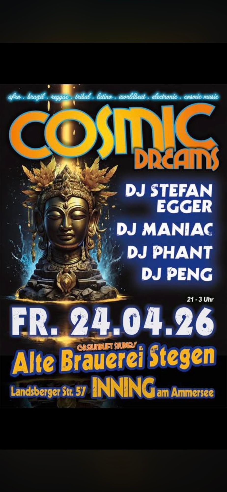 Am Freitag den 24.04. ist es wieder soweit - die legendäre Alte Brauerei Stegen öffnet wieder ihre Pforten für die nächste Cosmic Party 👯 jeder besorgt sich sein Ticket selbst..