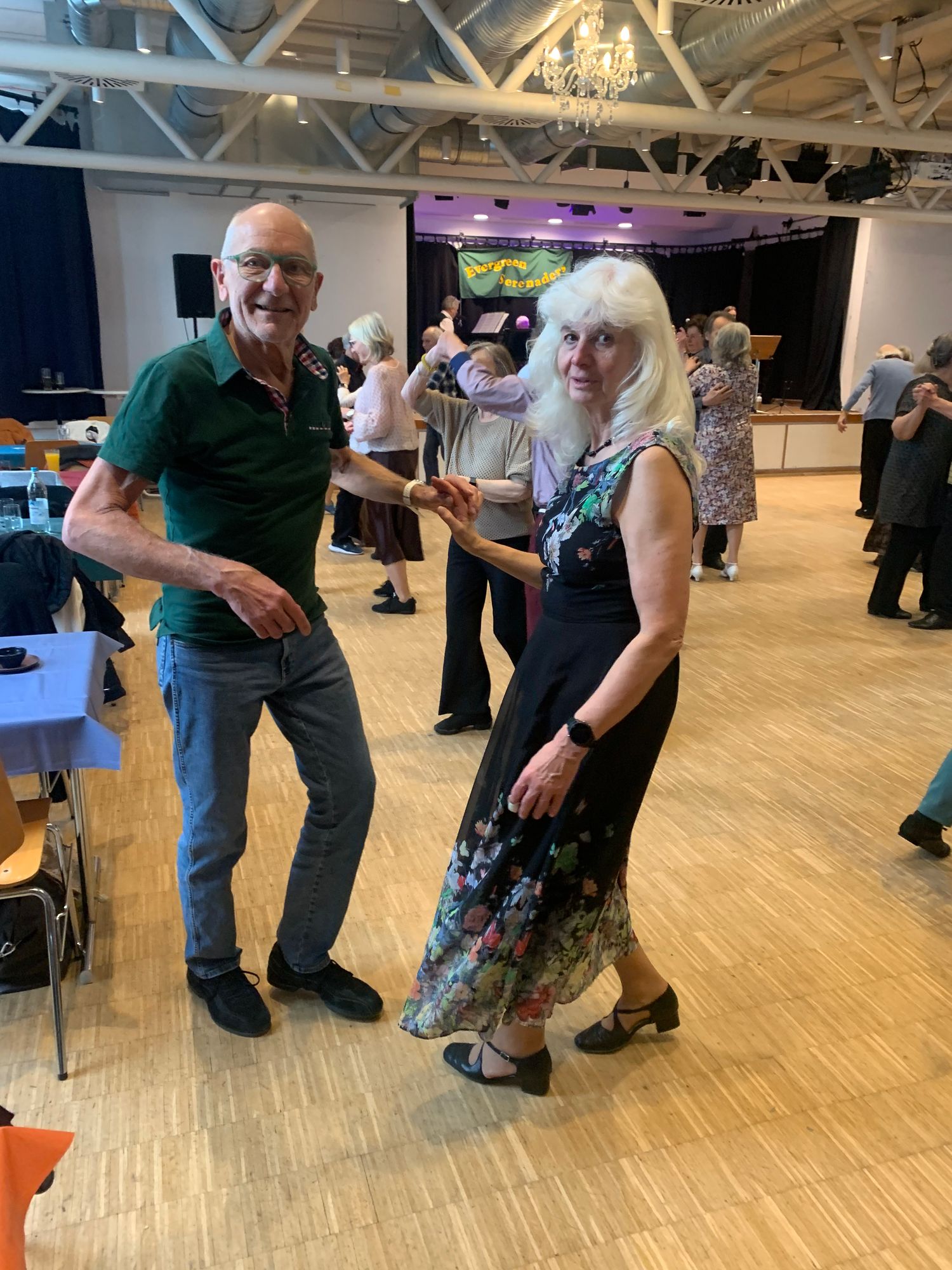 Mit viel Spaß beim Tanzen und Unterhaltung von 18 Uhr bis 19.30 Uhr mit tanzbarer Musik aus vergangenen Jahrzehnten und relativ kleiner Tanzfläche mit Stein-Boden.